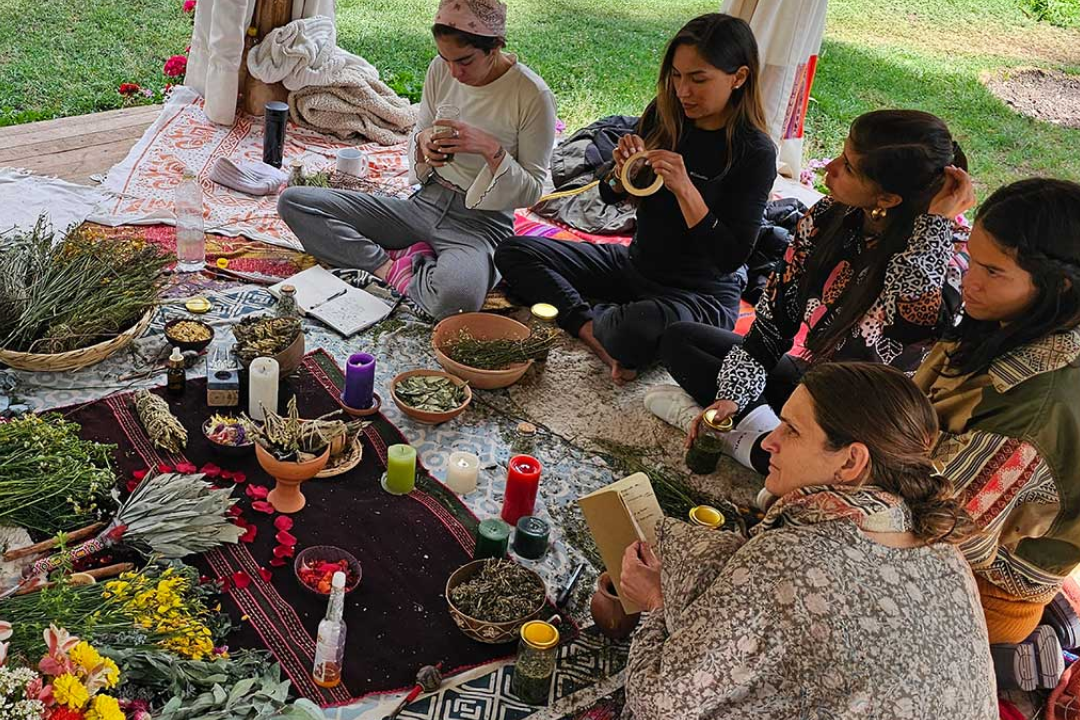 Soy creadora de Alquimia ritual, la comunidad en la que comparto mis experiencias de aprendizaje y enseñanzas. He brindado más de 40 talleres con alumnas y alumnos de alrededor de 20 países.